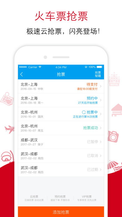 [火车票]-抢票升级,增加抢票通道,成功率极速提升!
