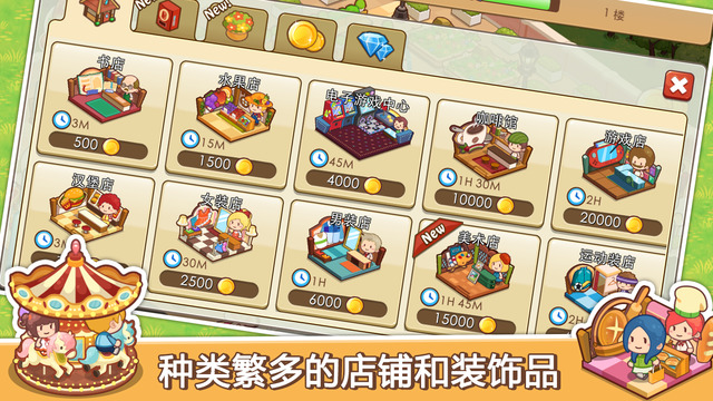 -建造并升级各种丰富的设施以及装饰品,包括餐厅,烘培店,服装店,电子游戏中心等等