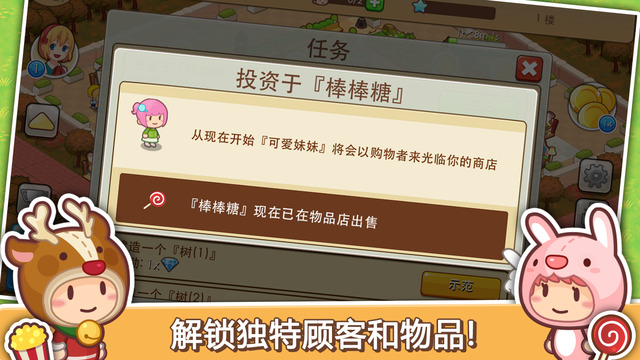 开心商店iPhone版是一款简单的模拟经营手游,在开心商店iPhone版游戏中玩家可以自己发挥想象力,将自己的创意随心所欲的设计自己的商店来吸引顾客。