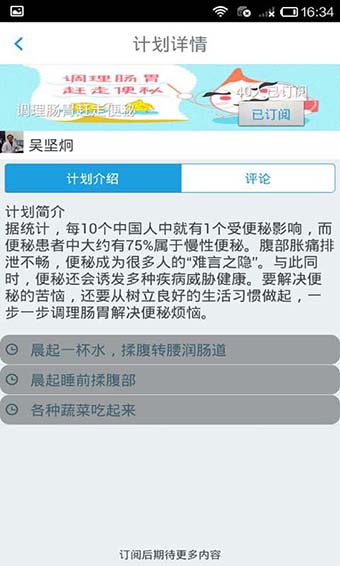 【定制个性健康计划】“病了吗”上可以定制由三甲医院专家制定的健康计划,健康计划的内容生动活泼,帮您改善和建立健康的生活方式。