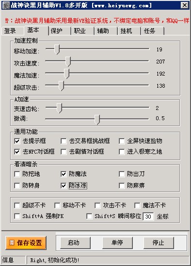 战士特色功能:无影攻击(带了无限刀的原理)多倍攻击 反击野蛮 移动暗杀 暗杀野蛮 全屏半月