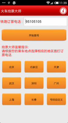 提供自动循环拨打订票电话、主要铁路中转订票电话变更、常用区号查询等功能。
