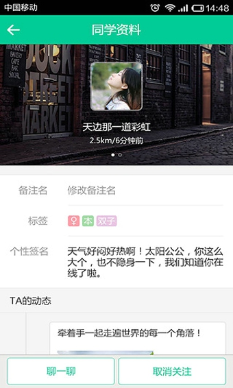 1. 校园信息广场,校园分类信息显示,随时掌握校园最新资讯2. 打造基于位置的同学网络,结交新朋友,通过文字、语音和图片进行交流,并随时随地分享动态给好友