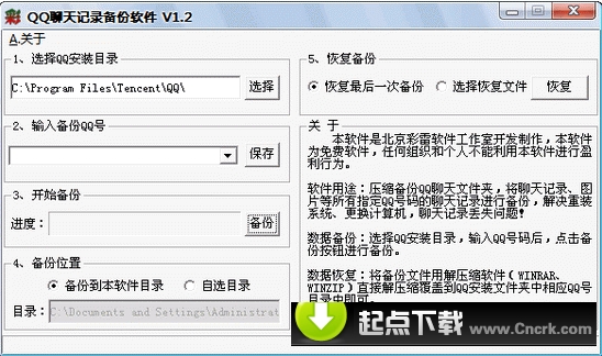 数据备份:选择QQ安装目录,输入QQ号码后,点击备份按钮进行备份。