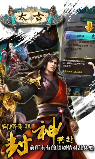 太古这款游戏在战斗中创新地加入了实时划屏功能,滑动手指,顷刻间斩敌于马下,将每一场战斗都掌握在手中,更有灵兽实时参战、装备打造、英雄炼化等丰富多元的玩法等着你!原著小说的世界观,成熟的剧情架构,搭载多元丰富创新的游戏系统,带领玩家进入一个充满感官冲击的奇幻之旅!