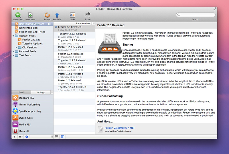 Feeder for mac是Mac os平台上的一款帮助用户编辑rss文档的Mac工具,Feeder for mac是一个全功能的应用程序创建、 编辑和发布 RSS 和 iTunes 的播客饲料,自动标记与艺术品、 艺术家等,在所有的流行播客格式包括 mp3、 M4As、 M4Vs 。【软件特点】