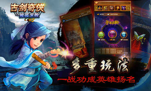 古剑奇侠之独孤求败是一款以古典武侠为题材,复合RPG+策略玩法的卡牌大作,一经推出就大受欢迎,成为新浪微博年度最佳手游。将一大批金庸武侠中的经典形象进行了萌化,名字也做了一些修改,也更突出了人物在小说中原本的特点。