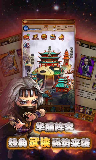 游戏中你是一个掌门的定位,收集卡牌中的人物不管在原著中多牛逼,在这里都要成为你的弟子任你差遣。玩法比较传统,游戏界面也用了比较符合武侠题材的风格基本与传统卡牌玩法无异,但也有武功追击和左右互搏两种有趣的战斗模式给游戏带来了新鲜血液。
