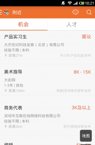 4. 通过公司认证,人人都能基于位置发布职位机会,抛福利、秀待遇、明确要求,速度吸引数千人才。