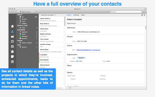 Blueprint 3D for mac是Mac os平台上的一款非常不错的Mac办公软件,Blueprint 3D for mac蓝图将无数的组织能力,为一个单一的应用程序。蓝图提供了完整的集成项目管理,联系人管理,任务,文件,记录,事件和归档,并自动同步与苹果机应用程序。【软件特点】