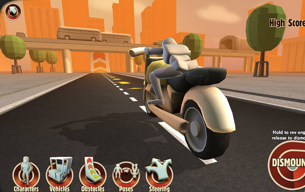游戏为玩家们提供了三种车辆的选择,同时人物在车上的形态也可以有好几种,例如坐在车里、坐在车顶、挂在车窗、掉在车尾等等。在这里小编最想说的是游戏在整个赛道上的障碍设置非常丰富,各种障碍一应俱全,保证能满足大家对于车祸现场的奇葩想法,让玩家们可以来一次惊险刺激的道路挑战。