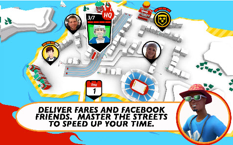 《疯狂出租车:都市狂奔(Crazy Taxi:City Rush)》是一款动作类游戏。在原始游戏的基础上结合了许多元素,包括导航箭头以及做玩命特技获得高分的功能,当然作为移动版游戏它也做出了不少的改进。在游戏的操作上配合简单的一键式触屏动作来实现多样的飙车特技,出租车也提供了升级功能越发强大,在司机方面也解锁了新人物让玩家可以招募使用,另外玩家还可以通过Facebook与好友进行特殊任务,增加游戏的乐趣。该游戏由著名游戏设计者菅野贤治操刀制作,在品质上继承了前作的优点的同时,新作也有着自己的特色。该游戏通过简单地点击屏幕进行左右移动的控制,轻划手指即可进行转弯操作。游戏中玩家将驾驶自己的出租车进行无尽跑酷,在跑酷的过程中还可以接受载客任务赚取费用,载客的过程中可以无视交通规则尽情在城市中狂飙!