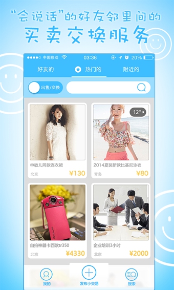 小交易,“会说话”的好友邻里间的买卖交换服务。最靠谱的手机开店软件。