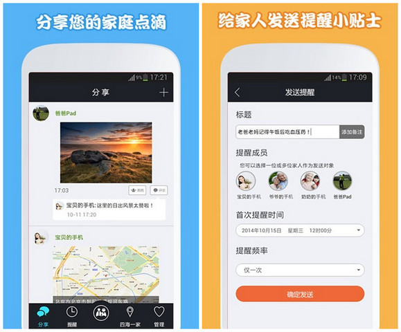 【建立家庭圈】家人的任何智能手机或Pad,都可以组成温馨私密的家庭圈子。【家庭社交】家人圈内可分享消息、语音、图片、实时位置,为您记录全家的甜蜜时光。