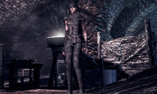 上古卷轴5:天际 2K材质泰伯小偷甲;非常精美的一款小偷甲材质及造型改换MOD,适用于女性UNP与CBBE身形,造型性感而不是朴素,有古墓丽影的即视感。【使用方法】