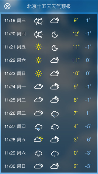 4、洗车、穿衣、晨练等20余种气象生活指数服务,72小时的贴心生活助手;