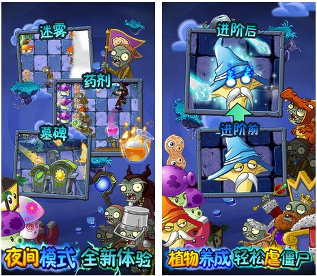 二、前作蘑菇家族登场黑暗时代,搭配了全新的黑暗时代的植物,在夜幕的世界跟僵尸的战斗,全新的体验在等待玩家。