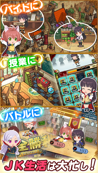 《JK吸血鬼命运的祭日(JKヴァンパイア~運命のフェスタ~)》是一款模拟育成 SLG 手游,玩家使用拼图的方式培育魔界女子高中生!在游戏中,玩家扮演刚到“圣阿卡迪亚学园”上任的教师,需要在20天的学期内教育培养魔界的女子高中生。每天可以让她们打工、上课,而上课的方式正是通过拼图来进行。拼图过程中学生会向玩家提问需要向哪个方向学习,最终会导致不同的能力值提升。另外课程达到指定分数才能顺利完成,否则会失败。【游戏特点】