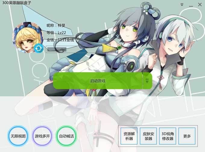 300英雄蹦跶盒子是一款新版的游戏盒子。该盒子界面精致简单,辅助功能多样且强大。还有无限视距、皮肤补丁安装、对战信息查询、个人战绩查询外,还拥有游戏多开、优化启动等实用功能。