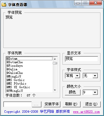 方便小巧的字体查看软件,能快速显示并预览系统中所有已安装的字体,并能自行更改显示样式、大小、颜色等……