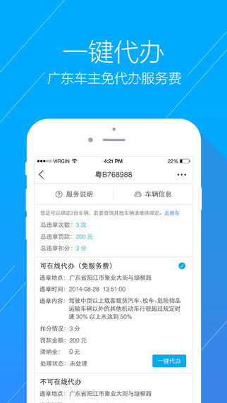 【最快捷的违章代办】足不出户,在线代办全国违章。(江西、广西、天津暂不支持)