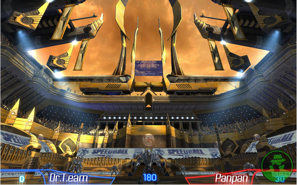 除了激烈的争斗以外,球场上还设置了各种障碍,比如球场中间的圆环,击到后,球就会被反弹回去,当然玩家也可以利用这些特殊的场地,来玩弄对手。