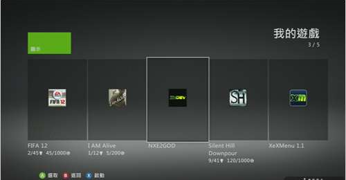说是修改游戏,其实用起来非常容易,第一步是先将所有你要安装的游戏全部安装好,第二步是运行NXE2GOD,屏幕会显示出你安装后所有的游戏标题,最后只要直接按A,所有游戏即自动修改完毕,以后运行它们就不需要再用光盘了。