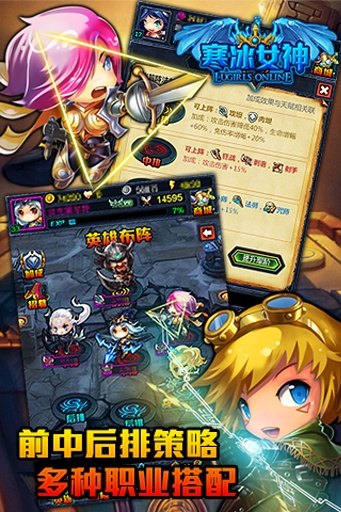 即时对战网游《英雄联盟》火爆全球,而手机游戏《寒冰女神》就是根据英雄联盟所改编!《寒冰女神》100%还原其全部角色和技能,更有独创的全新战斗模式,融合了多个经典地图场景,集卡牌对战、英雄收集、进阶养成、故事闯关和操作竞技等多种玩法于一体,顶尖卡牌画师倾力打造,画面精美,玩法简易,故事背景宏大,游戏独创布阵战斗模式,打造三路出兵的经典对战方法,组合不同类型的英雄单位,通过强化和进阶英雄使自己获得无可匹敌的强大力量,成为最强王者!