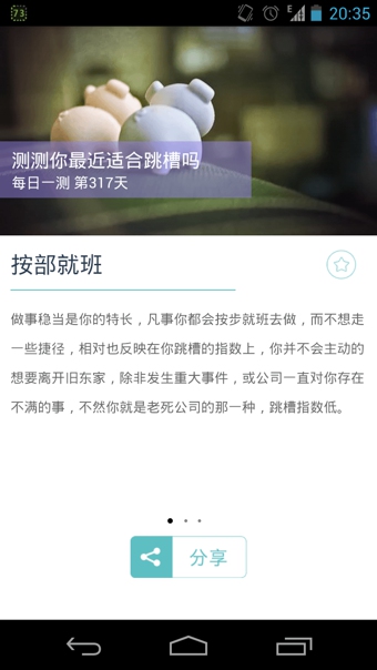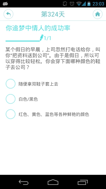 每日一测给你每日最新鲜的测试题目,超准确的分析结果让你爱不释手,还能与好友同步参与测试问答的乐趣。每日一测,每天一个小测试,每天进步一点点。让你了解自己、更了解你的伴侣,连闺蜜基友都可以了解于心,你还等什么?