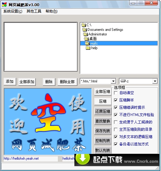 压缩后直接读取,与压缩前完全一样。本软件还有还原功能,您可以放心使用,可以助您们一臂之力(如果您使用fp98写主页的话,压缩率>20%),而且压缩速度快!本软件还可以进行网页的批量替换,可以为您分担许多工作呀
