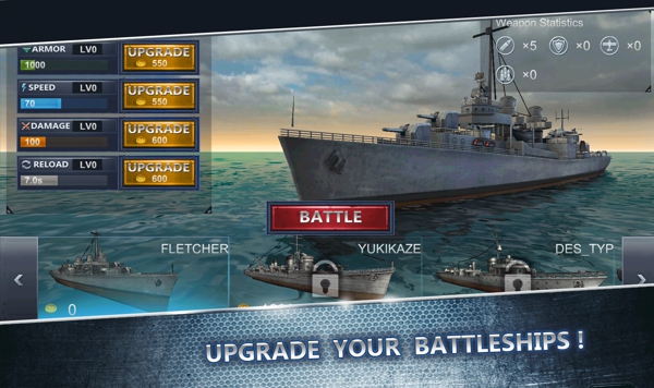 《海战战舰3D安卓版 Ultimate Sea Battle 3D》是一款海上射击游戏。世界上最强大的水面舰艇作战在这里等着你。这是一场激烈的3D海军战舰的游戏,需要击败对手,赢得胜利。一个伟大的,经典的海战游戏打回来又在大张旗鼓!游戏以二战题材为背景,带你进入战火纷飞的年代。作为巡洋舰的指挥官,你的任务是击沉敌方军舰,保卫领海。尽管有一大群的策略游戏,需要你的交易能力和海军力量,以完成每个任务之间的良好平衡。通过下沉的敌人,提升自己的战斗力,扩大自己的海军,海军升级武器的规模,购买更先进的船只。你将扮演一个不同的战列舰,巡洋舰或驱逐舰,参加最新的战斗!【游戏特点】