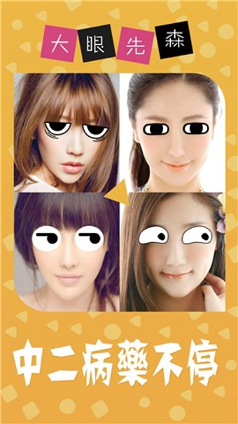 大眼先森是一款非常有趣的趣味应用。这款应用可以在你的照片上给你黏贴一双非常大且炯炯有神的大眼睛,另外还有一些非常具有时尚个性的眼睛等待你的体验。