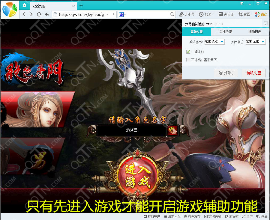 一定要进入游戏后方能开启辅助工具。一键主线:主线到38级,职业默认选舞天,直接运行即可