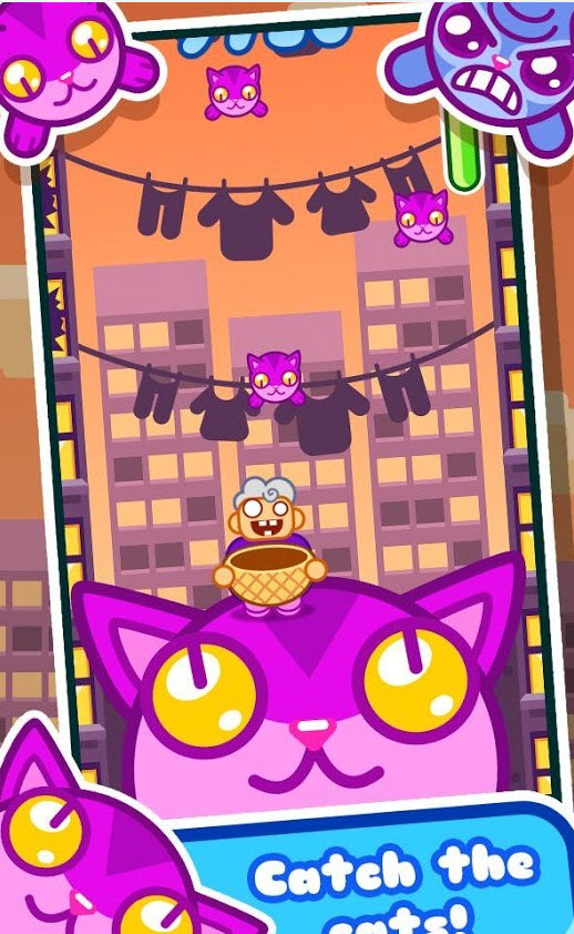 《接住小猫 Cat Basket》是一款画面精致的休闲类游戏,游戏玩法很简单,用重力感应控制方向,将向下掉的小猫接住,连击越多,分数越高。需要注意的是要阻止坏蛋掉下来,你需要点击屏幕,弹出荆棘,把坏蛋杀死。玩法介绍:在Cat Basket《猫猫篮子》中,玩家通过倾斜手机控制拿篮子的老婆婆移动,接住不断从天下掉落的小猫。虽然看似简单,可是也需要一股寸劲,猫咪要是磕到篮子边缘可是会被弹飞的哦!所以最好是让小猫不偏不倚落入篮子正中。当然了,天上还会不时掉落一两只小狗,玩家也需要移动到小狗掉落的位置,然后点击屏幕,篮子就会变成狼牙棒将小狗弹飞。注意,如果小狗和小猫同时掉下来,要率先弹飞小狗,因为太多数量的小狗掉下来,就会Game over…
