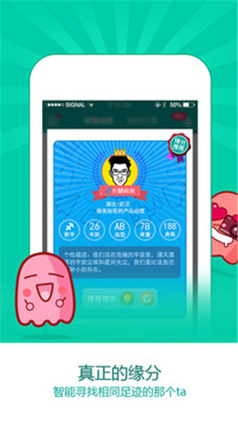 根据你每天的行程轨迹,智能寻找相同足迹的人,也许你们曾在人海擦肩过无数次,为你带来真正的缘分所在。