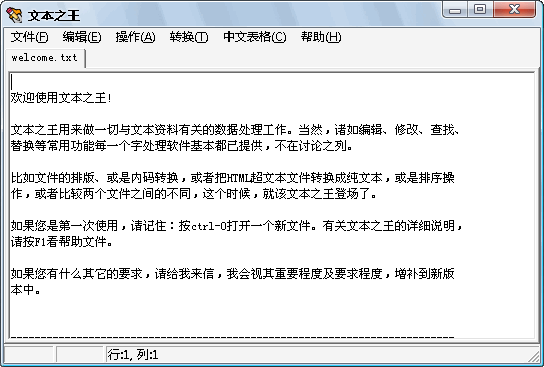 怎样把一个文本文件中的各行指定位置上的数字按一定规则分组汇总,怎么做?怎样从一个文本文件中筛选出含有或不含一组字符串的行?怎样直接编辑与保存剪贴板中的文本内容?怎样删除一个文件中所有多于一个的空格?怎样删除一个文件中所有的空行?怎样查看HZ码?... ...答案是:用『文本之王』!文本之王适合于对于处理文本有“特殊需要”的朋友,虽然要求可能很特别,只要具有普遍性,就完全可以在文本之王未来的版本之中实现