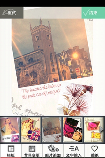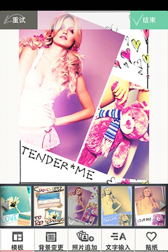 不再纠结于照片的配置和布局。使用模板一次变成拼贴画,当然你也可以自由设计喜欢的照片