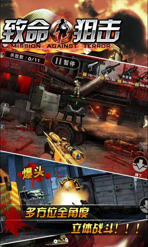 致命狙击安卓版是一款基于物理的狙击游戏,节省你的弹药,争取一枪过关,用你的子弹通过反弹墙壁来狙击所有敌人,注意别射到自己,50个颇有难度的关卡。