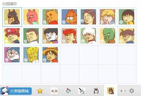 白眼嫌弃的表情包下载 免费版 白眼嫌弃的表情包是一款收集了许多人物翻白眼的图片包。里面有许多卡通人物翻白眼的QQ表情,非常可爱,让人看了忍不住会心一笑。喜欢的朋友不妨下载用用。