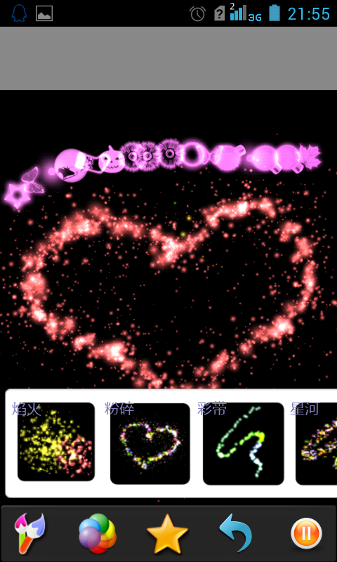 用星彩涂鸦得到美妙的图画是如此容易,每一笔都会为你和孩子带来惊喜,带有动感的画面让人百看不厌,流动的色彩、灿烂的星子,你的画作再不会流于平庸。