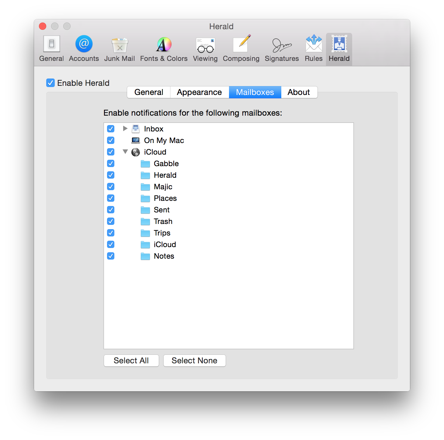 启用对所有邮箱或者你选择的只有特定的邮箱通知。