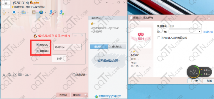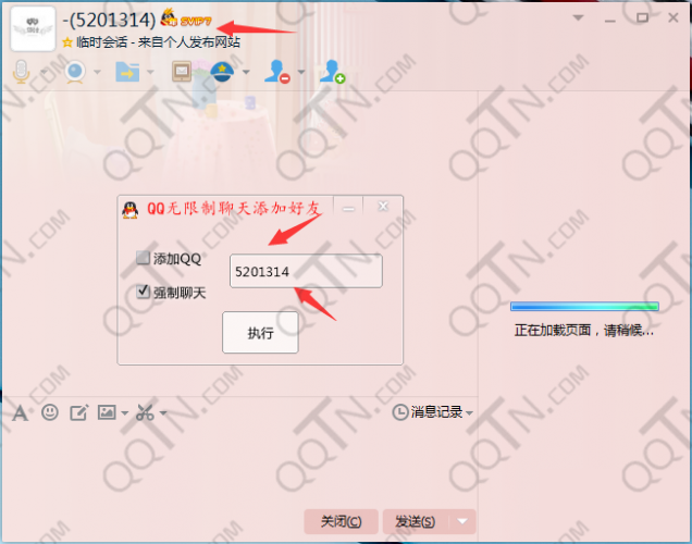 1、打开工具之后,选择操作项(支持突破主线账号添加QQ好友、强制聊天)2、输入QQ号3、点击执行