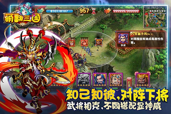 萌翻三国采用极具Q版的人物角色风格,游戏将三国中的著名人物以卡通化的形式展现出来,正太、萝莉,大脑袋和小身躯为你带来与众不同的三国体验。精美的场景原画,量身打造的角色配音,让你随时随地置身三国战场,书写不一样的三国历史;独特创新的游戏玩法,角色养成以及战争策略让你过足三国瘾。