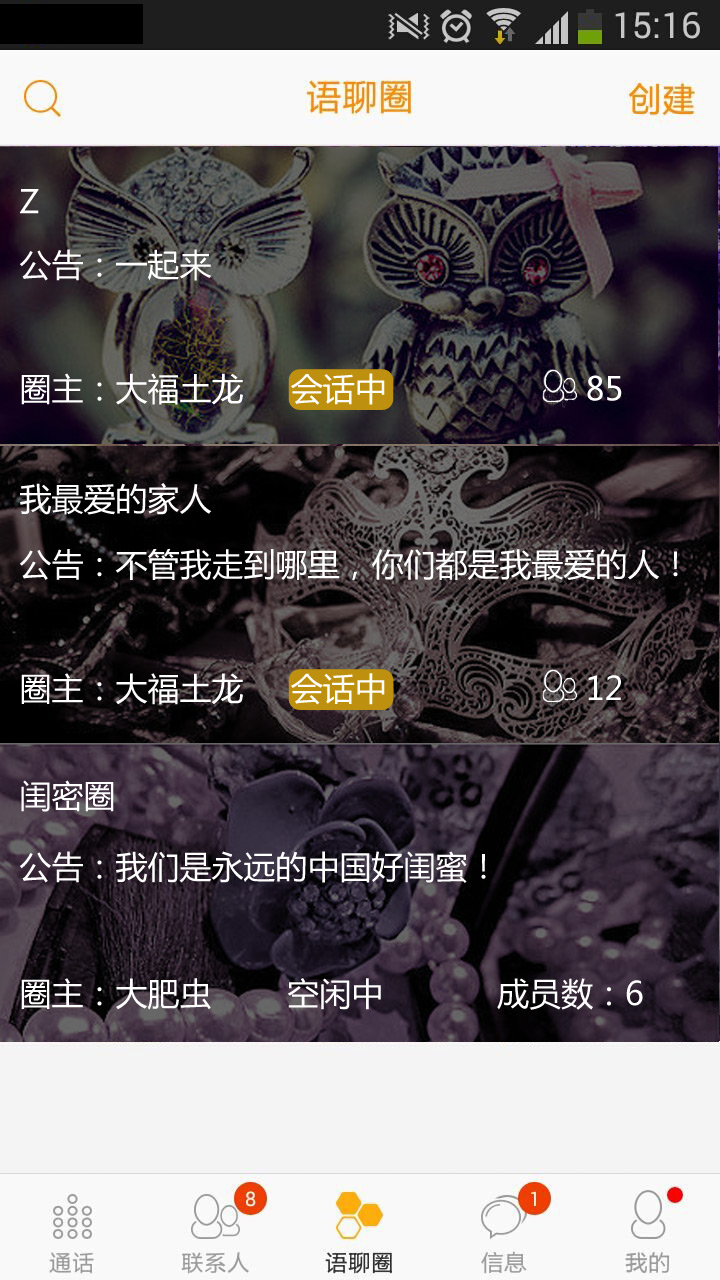 至于个性、便捷,我感受了一下蜂窝的语聊圈。邀请了三五个闺蜜,建了一个闺蜜圈,妹子们七嘴八舌的跟在群里一样,想说话就说话,想打字就打字,还能发图片,大家互相说话还不会被干扰,这点太棒了!另外,小编在动态里还惊喜地发现了一种图文结合的玩法,一张图配一段文字,圈子里的成员能实时看到你的状态,随时跟你互动,而且只有这个圈子里的才看得到,有得聊有得看,以后还怕闷么?宅在家里不如”圈”在一起,要是你也感兴趣,可以直接在应用宝里搜索“蜂窝语聊圈”下载,一般人我还不告诉他呢~~~嘿嘿
