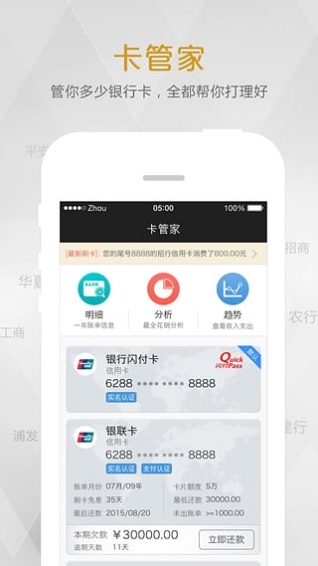 9、消费记录查询:随时随地查看银行卡消费记录。