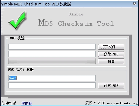 Simple MD5 Checksum Tool 是一个可以让你计算出软件MD5校检的小工具