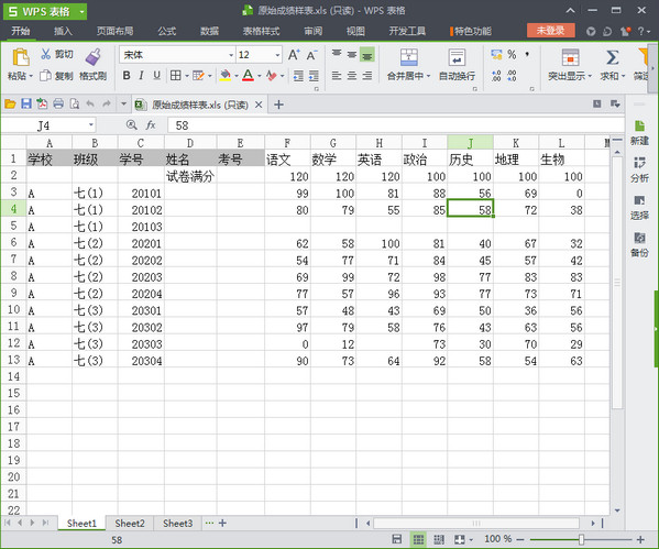 *录入成绩:运行软件后,参照界面中图片说明将原始成绩表适当调整,要求原始成绩保存在Sheet1表中,第一行第一格开始依次为“班级”“学号”“姓名”“考号”,考号后面紧跟考试科目名称,可随意添加科目。其中“班级”“考号”项为必填项(为空的话将不计入应考人数),考号、学号必须为数字格式。班级要么全为数字格式,要么全为文本格式,姓名也是如此。*成绩统计:运行软件后,点击“一键统计”按钮,在对话框中选择原始成绩EXCEL文档,导入后稍等片刻,统计完毕将自动打开统计报表。 *特别提醒: 如无法加载宏,请将Excel的安全级别程序。方法:点击菜单:工具-宏-安全性。保存时会弹出隐私警告,请点击确定。