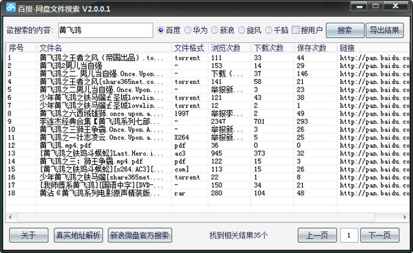 新增华为网盘、新浪微盘、旋风分享、千脑网盘的搜索;