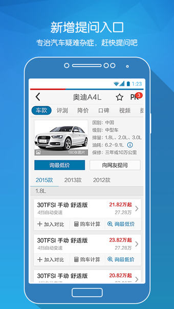 2、找车型、查报价:方便快捷检索车型信息,七千四百款车型价格参数一目了然;