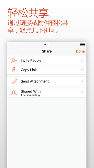通过电子邮件发送演示文稿、超链接或 PDF,即可轻松地与其他人共享您所做的工作。